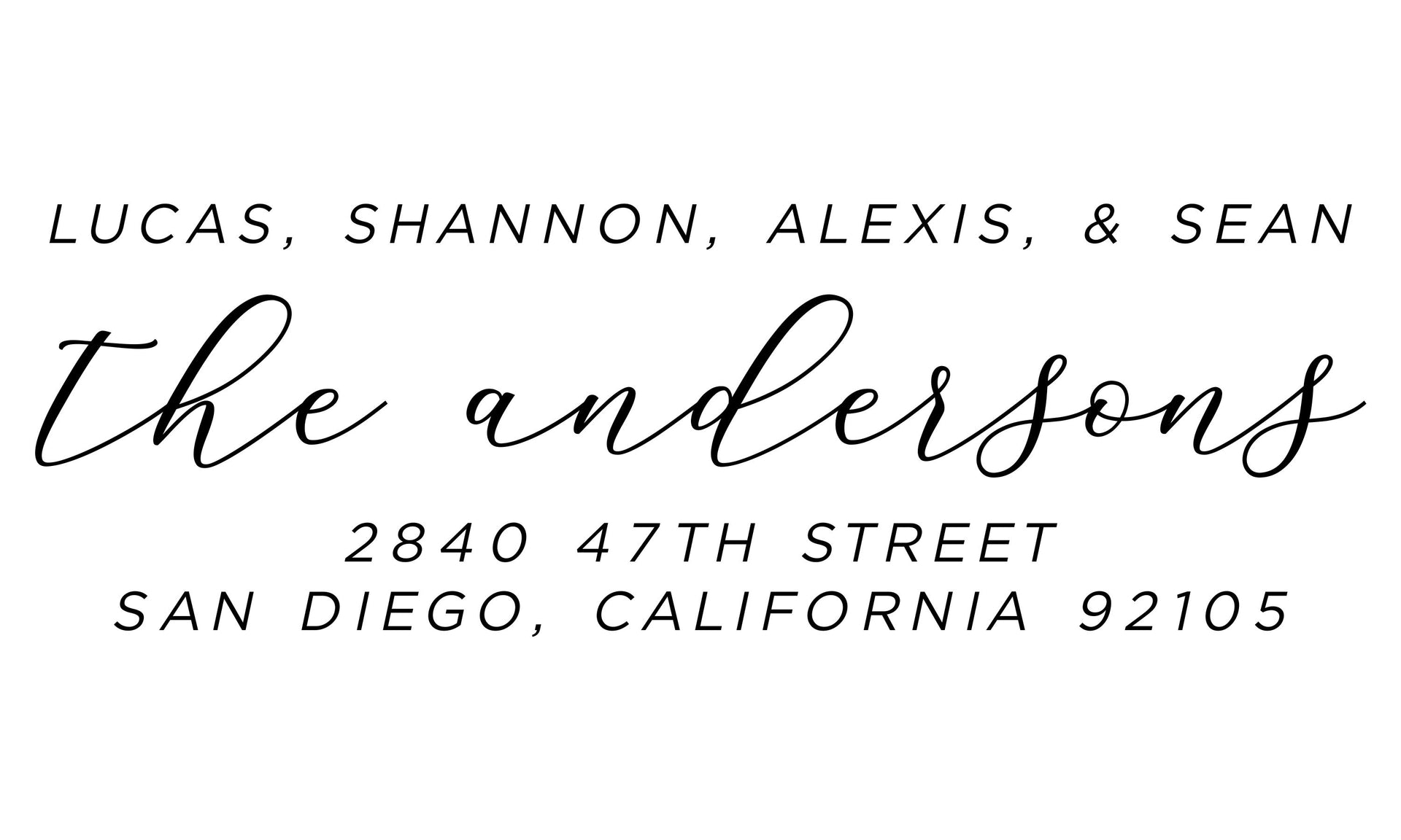 Make your mail stand out with The Anderson Family Address Stamp! Featuring a unique, stylized design with your family's names in modern and script lettering. This high-quality stamp will add a personal touch and plenty of personality to every package and letter you send.