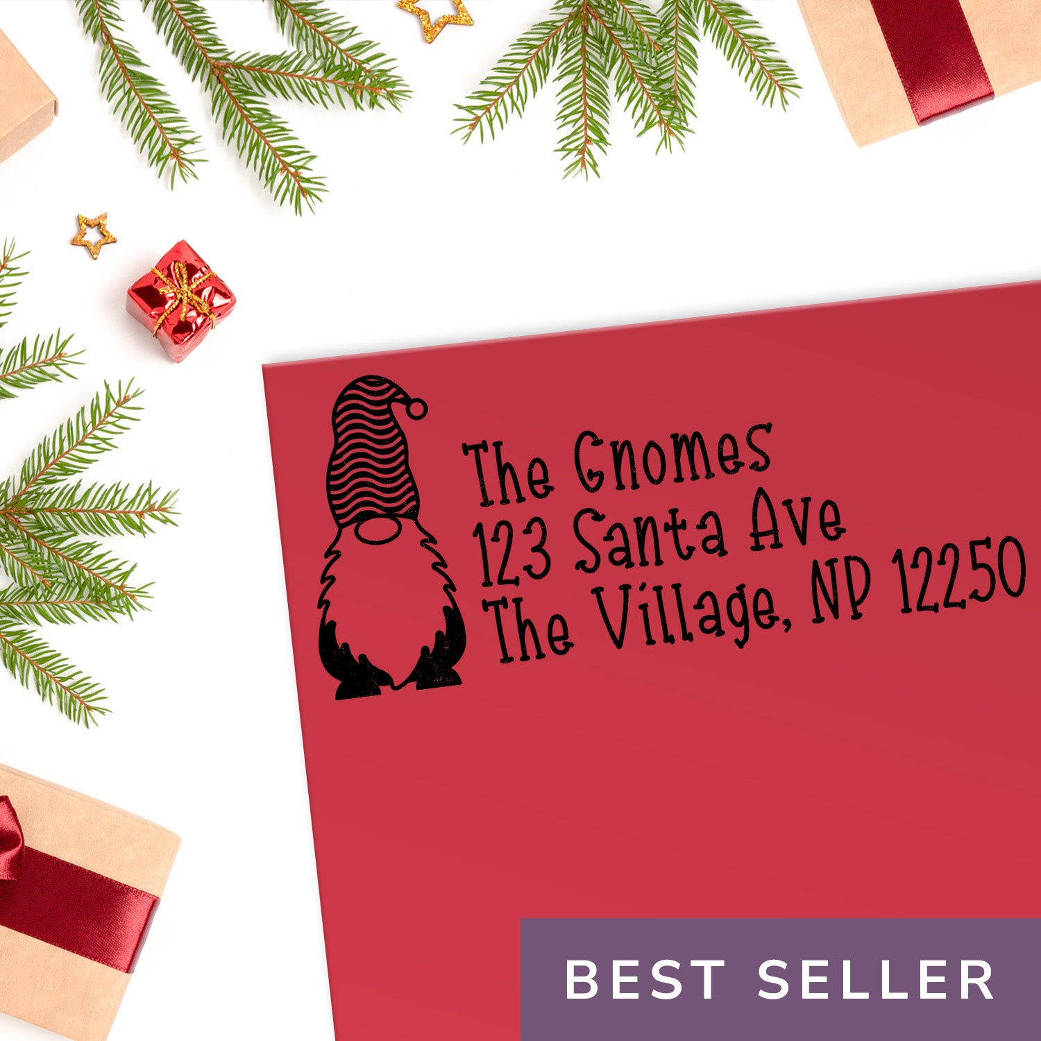 Welcome the season with this charming Christmas Gnome Address Stamp! This stamp is perfect for adding a unique touch to your holiday correspondence. Get ready to spread holiday cheer with this long-lasting, personalized stamp!