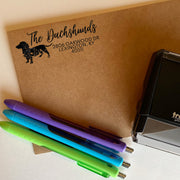 Let your dachshund love be known with this address stamp! Perfect for adding your return address to envelopes, postcards, and letters. It's also a great gift to give your new favorite married couple!
