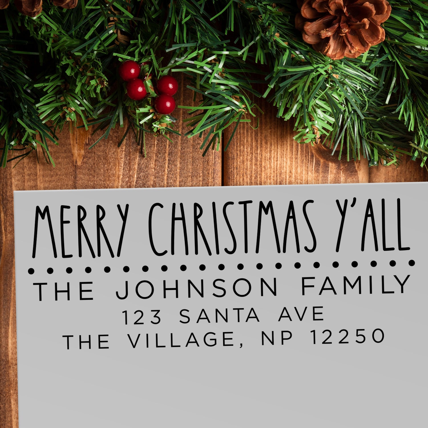 Easily add your return address with this festive Christmas stamp! Great for stamping on envelopes, postcards and more.