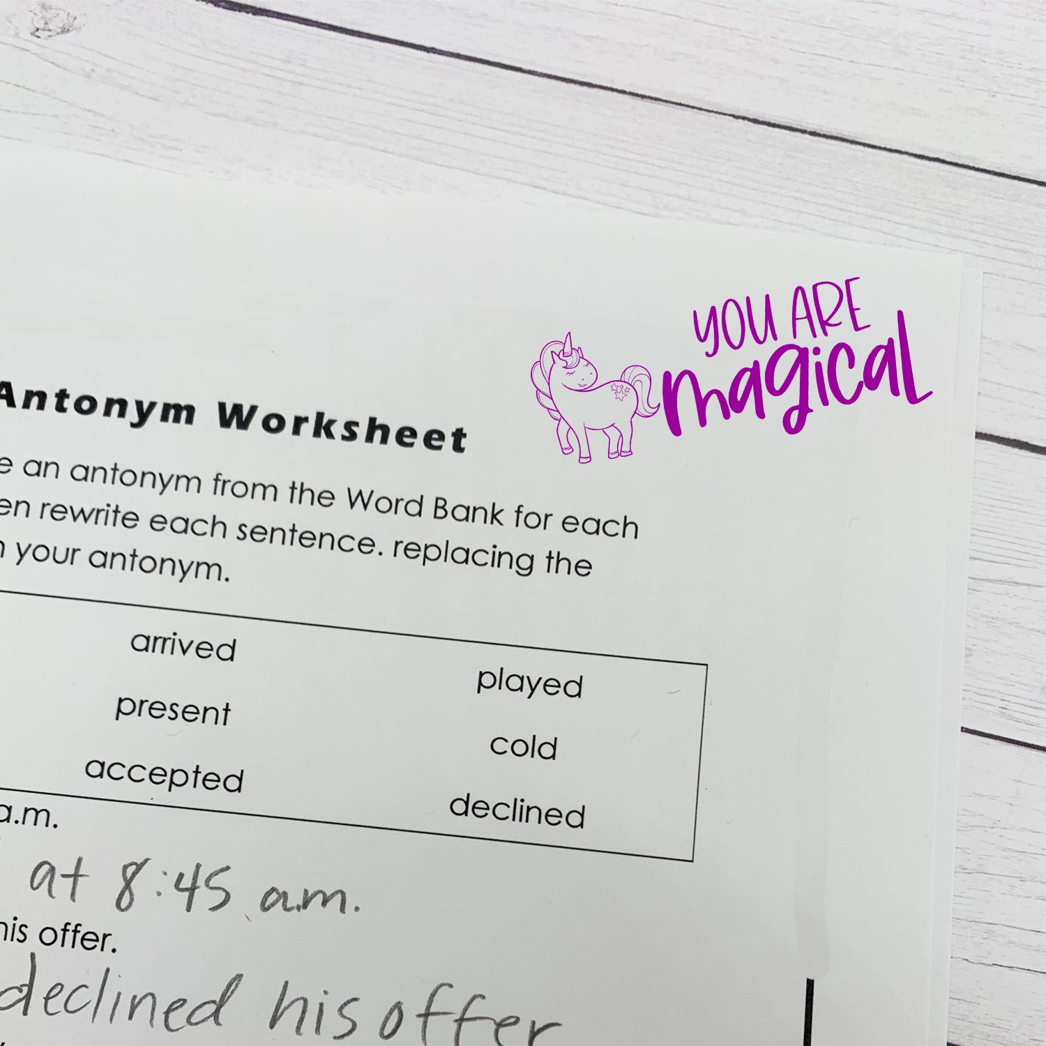 This stamp makes grading simple! It is a great tool for teachers to use to communicate with students on daily assignments, homework, projects, etc. The self-inking stamp can be personalized with your favorite color. Choose from black, red, blue, green, or violet.