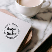 Cats, books, coffee, and Jesus... What could be better?! This stamp makes it easy to add your name to all of your books! It's a great reminder for anyone who borrows your books to return them to your library when they are done reading them. Your stamp comes filled with one premium ink color of your choice. Choose from black, red, blue, green, or violet.