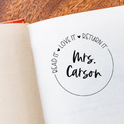 This stamp makes it easy to add your name to all of your classroom books! It is a great reminder for your students to return books to your library when they are done reading them. Your stamp comes filled with one premium ink color of your choice. Choose from black, red, blue, green, or violet.