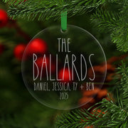 Our personalized acrylic ornament is the perfect additional to your tree or give a few as Christmas gifts! This ornament is personalized and made to order with your names and year. Design is laser engraved.