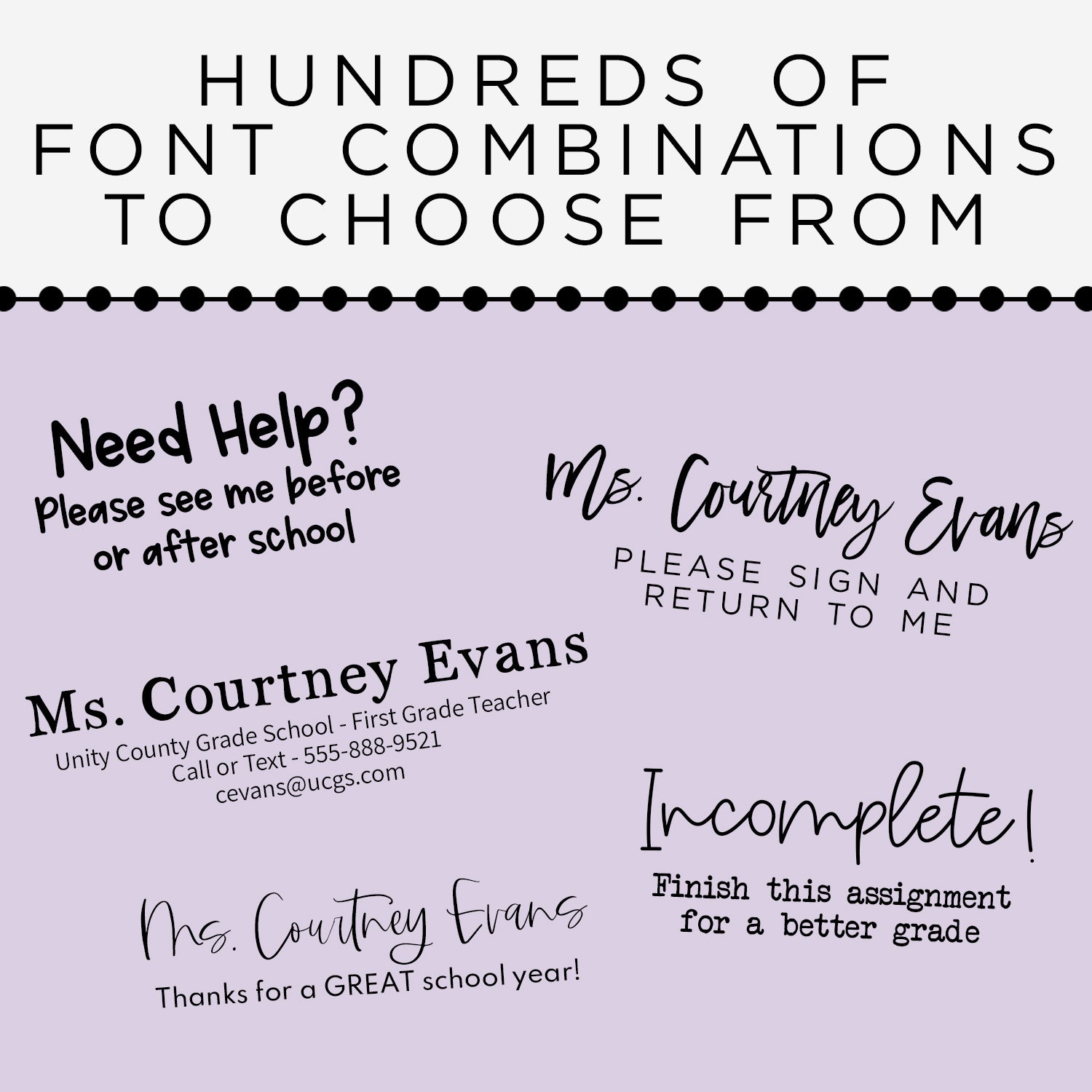 Make your stamp even more personalized! Choose from a variety of fonts for a fully custom-made stamp. Your stamp comes filled with one premium ink color of your choice. Choose from black, red, blue, green, or violet.