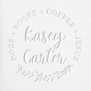 Dogs, books, coffee, and Jesus... What could be better?! Easily add your name to your book collection with this embosser! Our embossers have a revolutionary mechanism that reduces the amount of effort needed to emboss paper by 30%. The solid steel construction ensures a lifetime of durability. Scroll through the images above to see a video on how to use our embossers. All of our custom products are made-to-order at our small shop in southern Illinois.