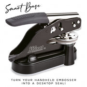 Convert your handheld embosser into a desktop seal. Works with our Monogram Embossers and Book Embossers. Helps make embossing envelopes and books a breeze! Compatible with the Shiny ES handheld embossing seal frame. See how the Smart Base works in this video.