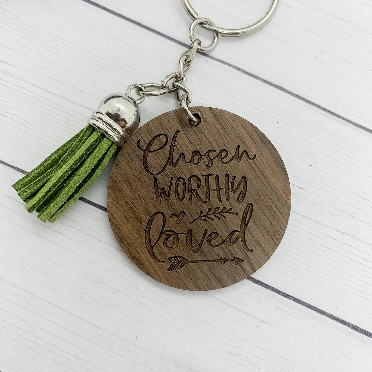 Add our Chosen Worthy Loved Keychain to your key ring or bag and keep this great reminder with you everywhere you go.