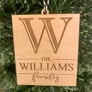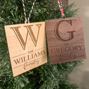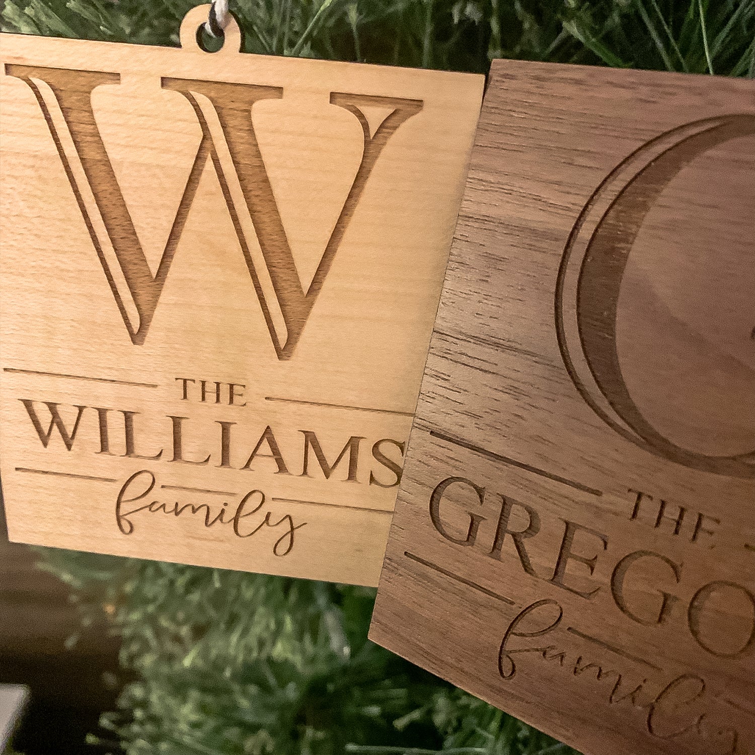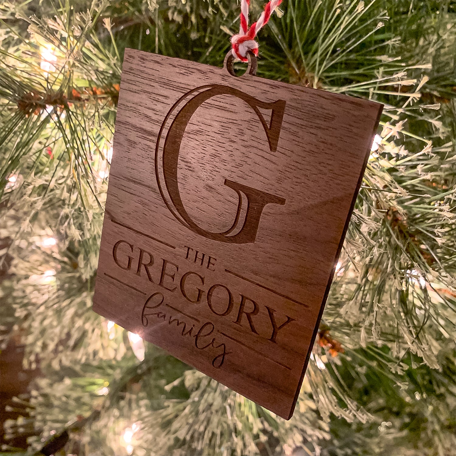 Our personalized wood ornament is the perfect additional to your tree or give a few as Christmas gifts! This ornament is personalized and made to order with your last name and initial.