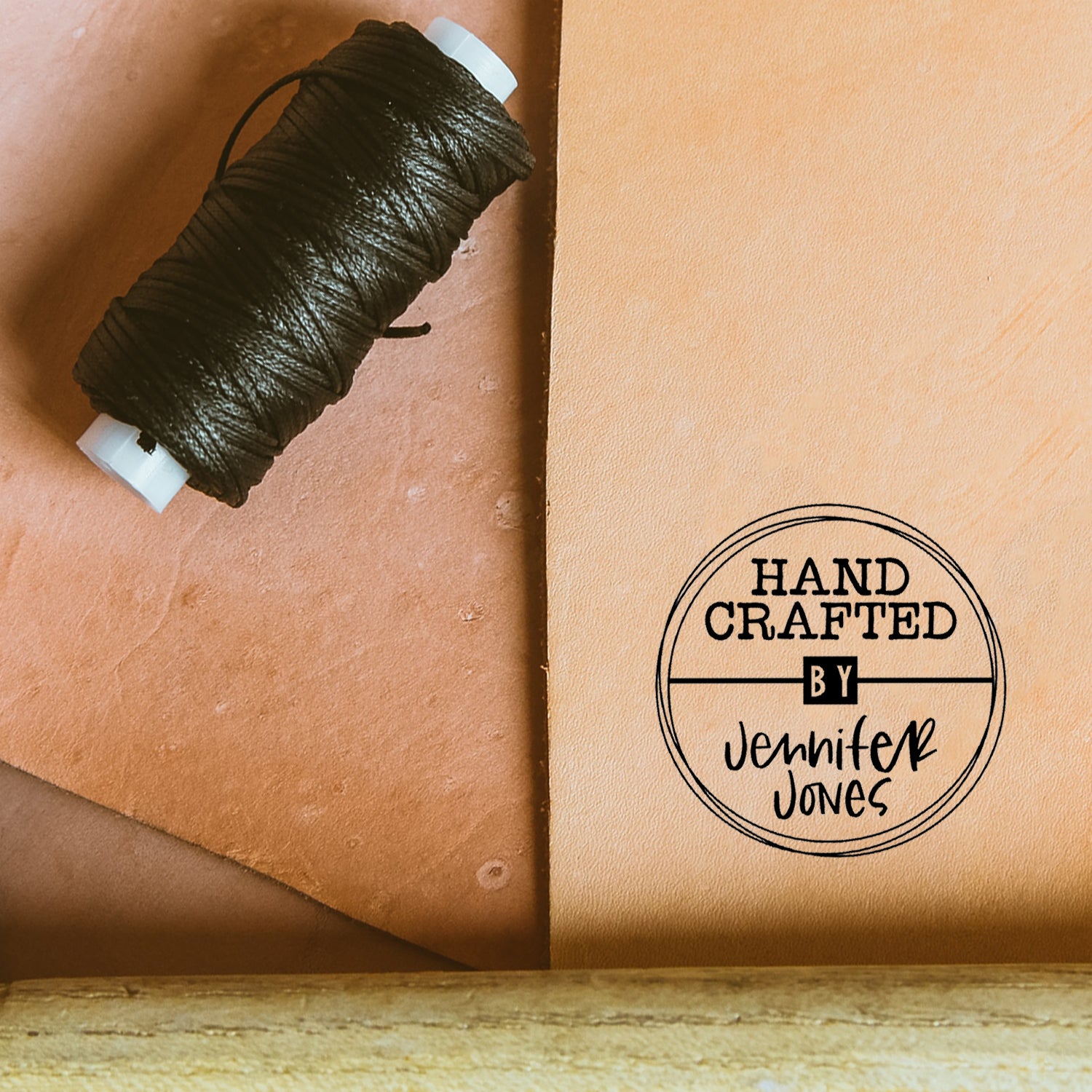 Our Handcrafted By Stamp is perfect for adding a special touch to your handmade products or gifts. It can be used for personal use or as a business stamp for your orders. Your stamp comes filled with one premium ink color of your choice. Choose from black, red, blue, green, or violet.