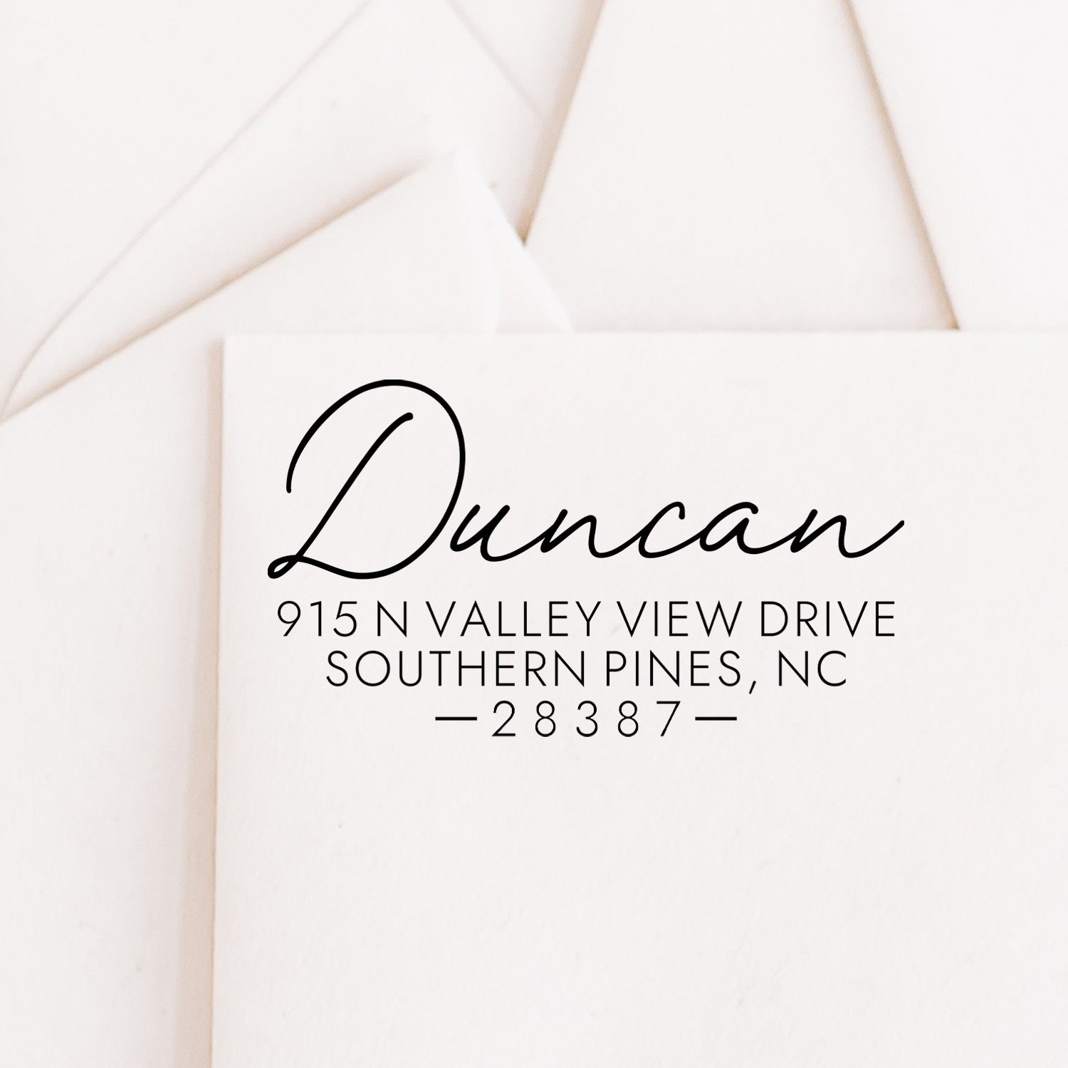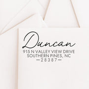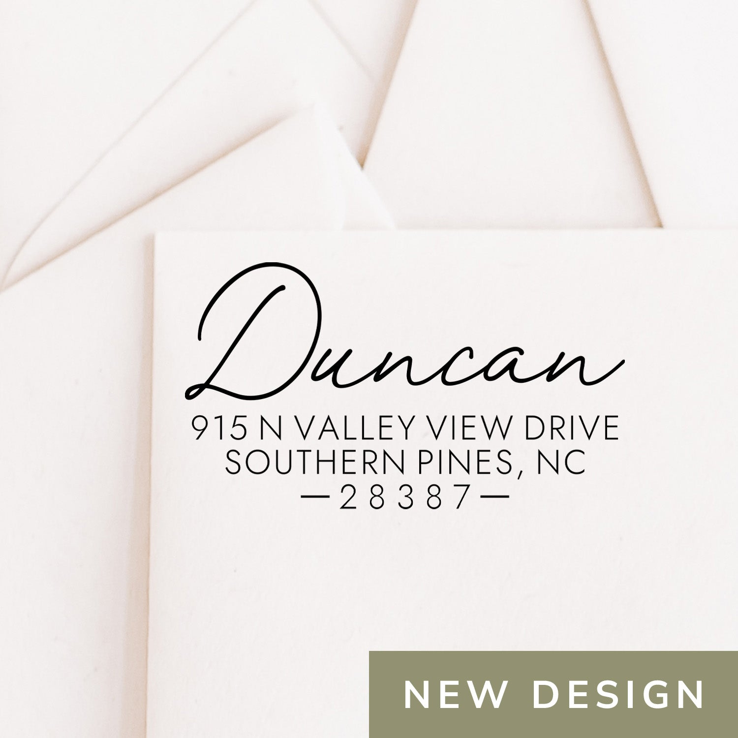 Easily add your return address with this uniquely designed stamp! Great for stamping on envelopes, postcards, and more.