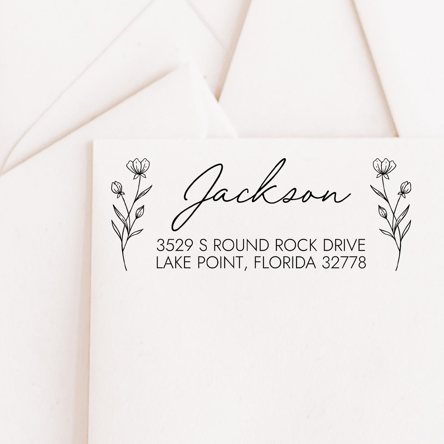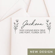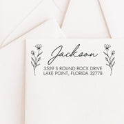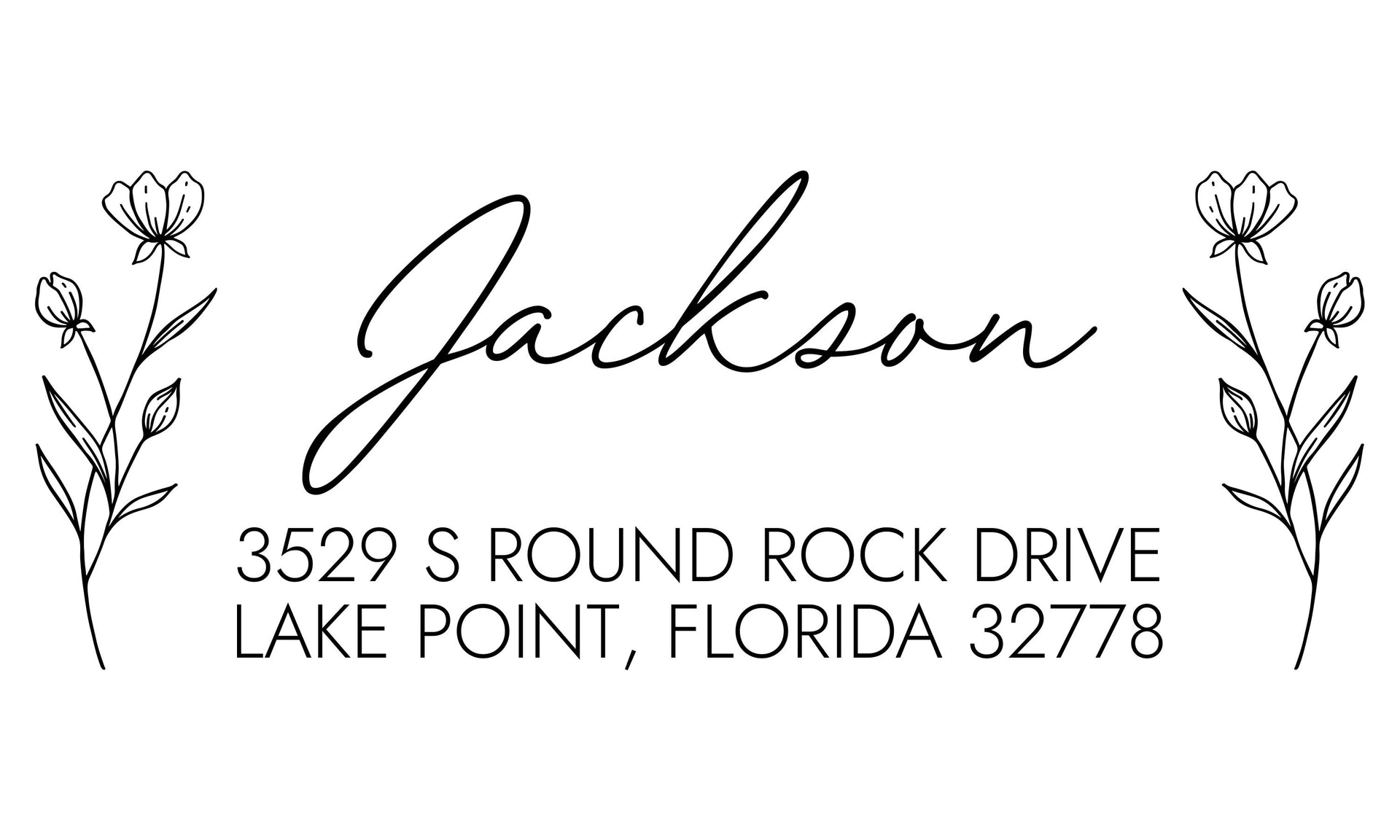 Easily add your return address with this uniquely designed stamp! Great for stamping on envelopes, postcards, and more.