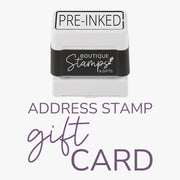 Want to give someone you love an address stamp but not sure which design they would like? Send them a gift card! Your gift card will be sent directly to the email provided at checkout. Choose from three different sizes: Medium, Large, and Extra Large.