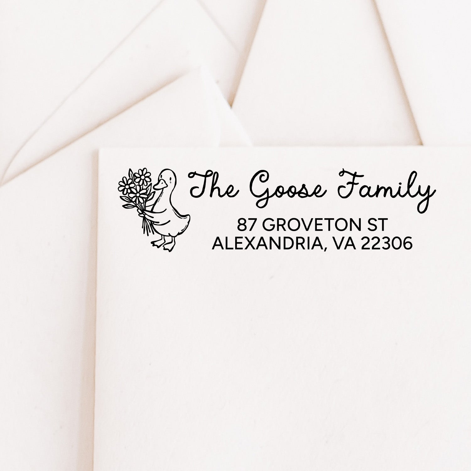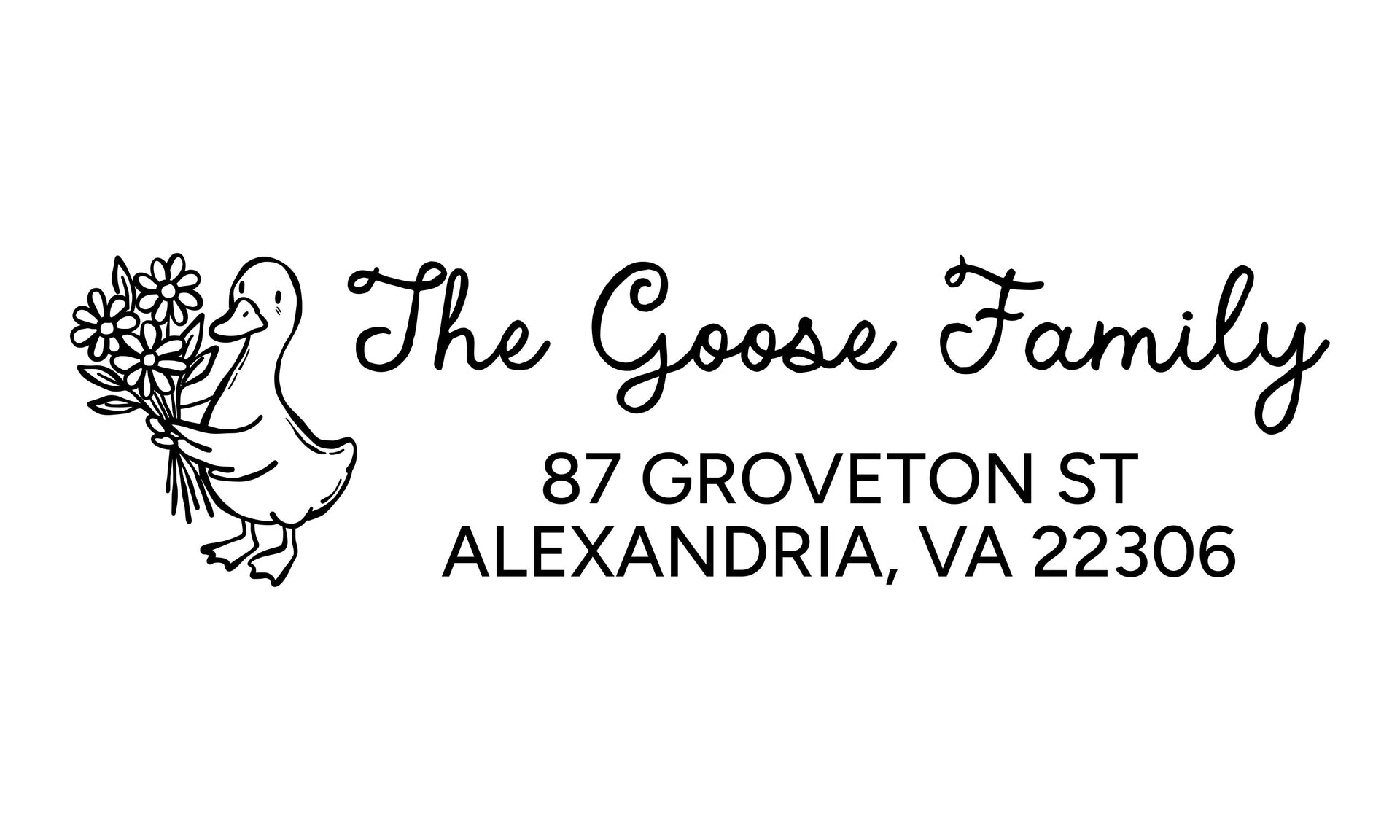 Let your goose love be known with this address stamp! Perfect for adding your return address to envelopes, postcards, and letters. It's also a great gift to give your new favorite married couple!