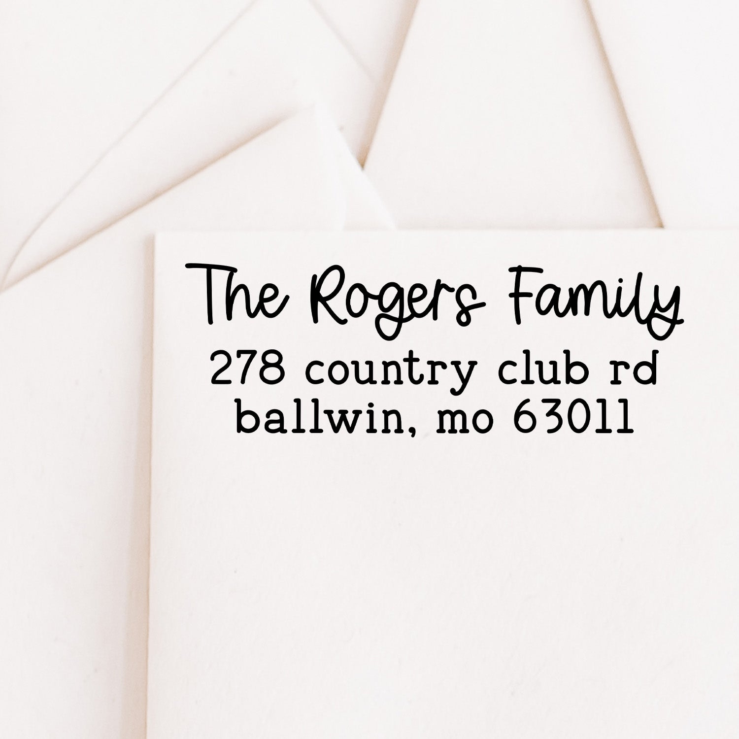 Easily add your return address with this uniquely designed stamp! Great for stamping on envelopes, postcards, and more.