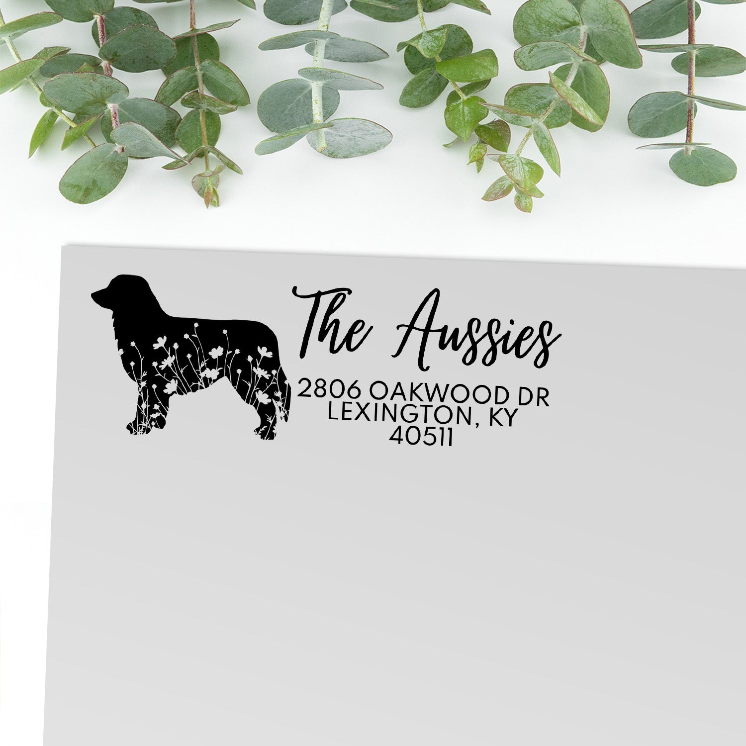 Let your Australian Shepherd love be known with this address stamp! Perfect for adding your return address to envelopes, postcards, and letters. It's also a great gift to give your new favorite married couple!