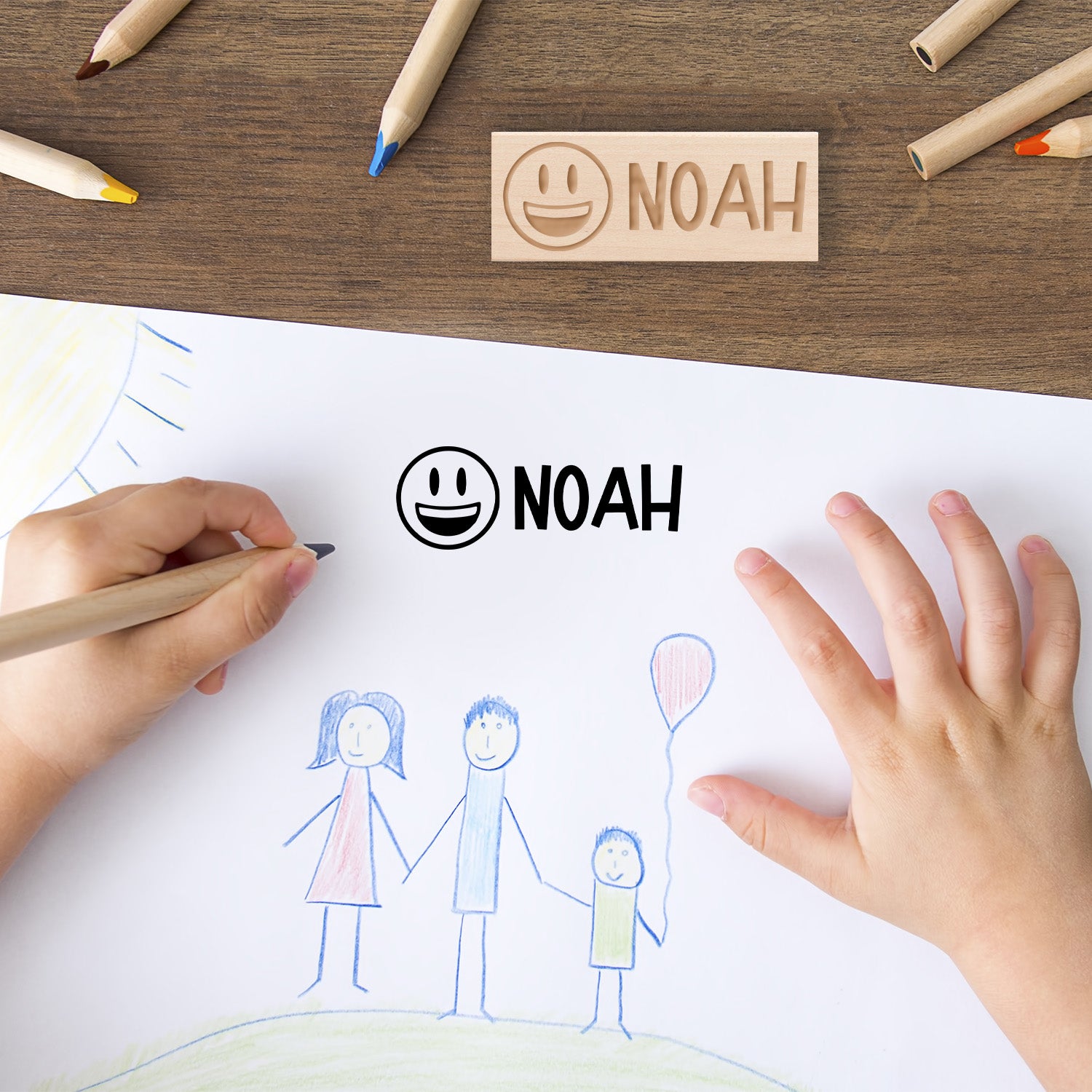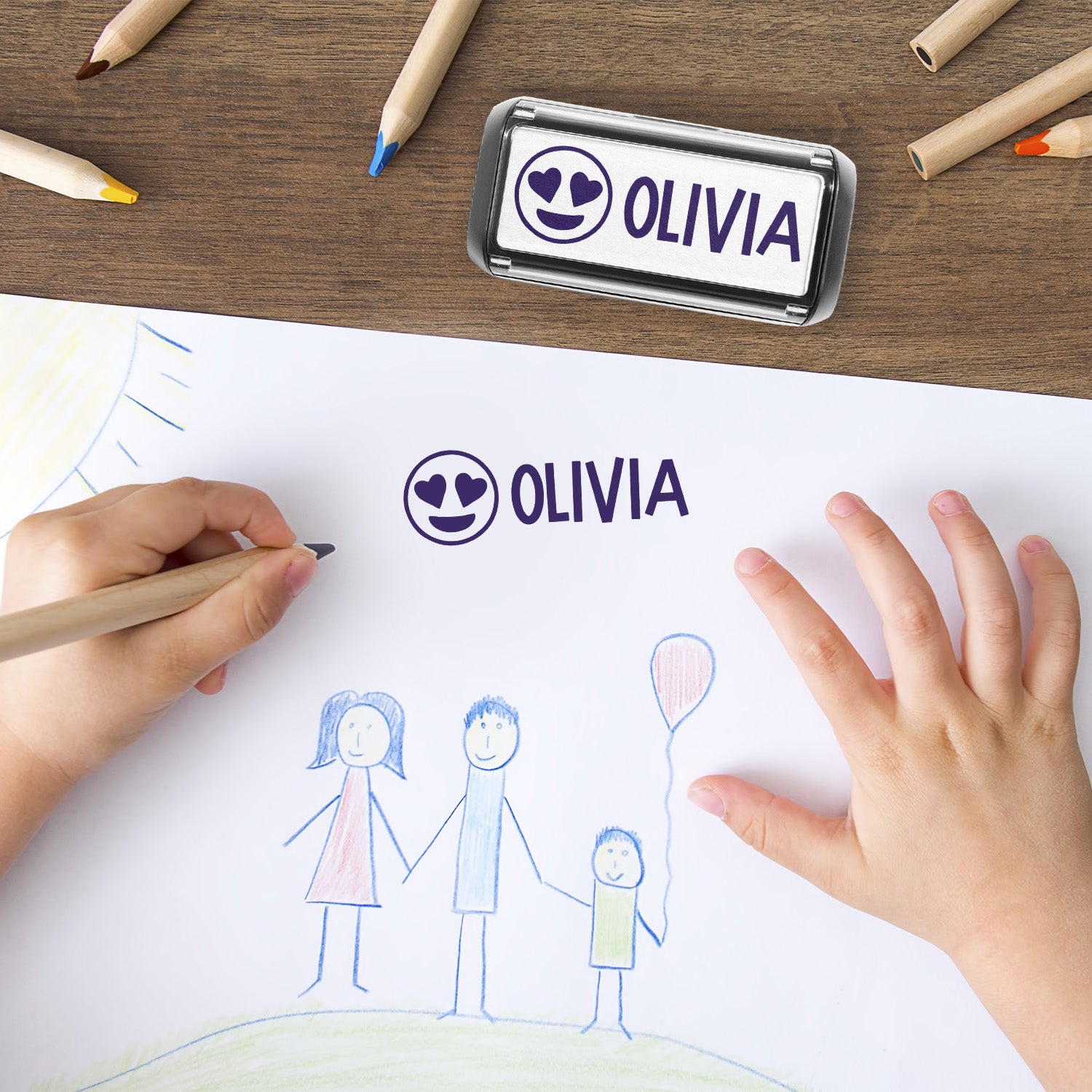 Your child can easily stamp their name on books, drawings, notes, cards and more! Makes for a great birthday gift or stocking stuffer for Christmas. Choose from a self-inking stamp or a wood mount stamp with separate ink pad. Ink color choices include black, red, blue, green or violet.