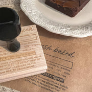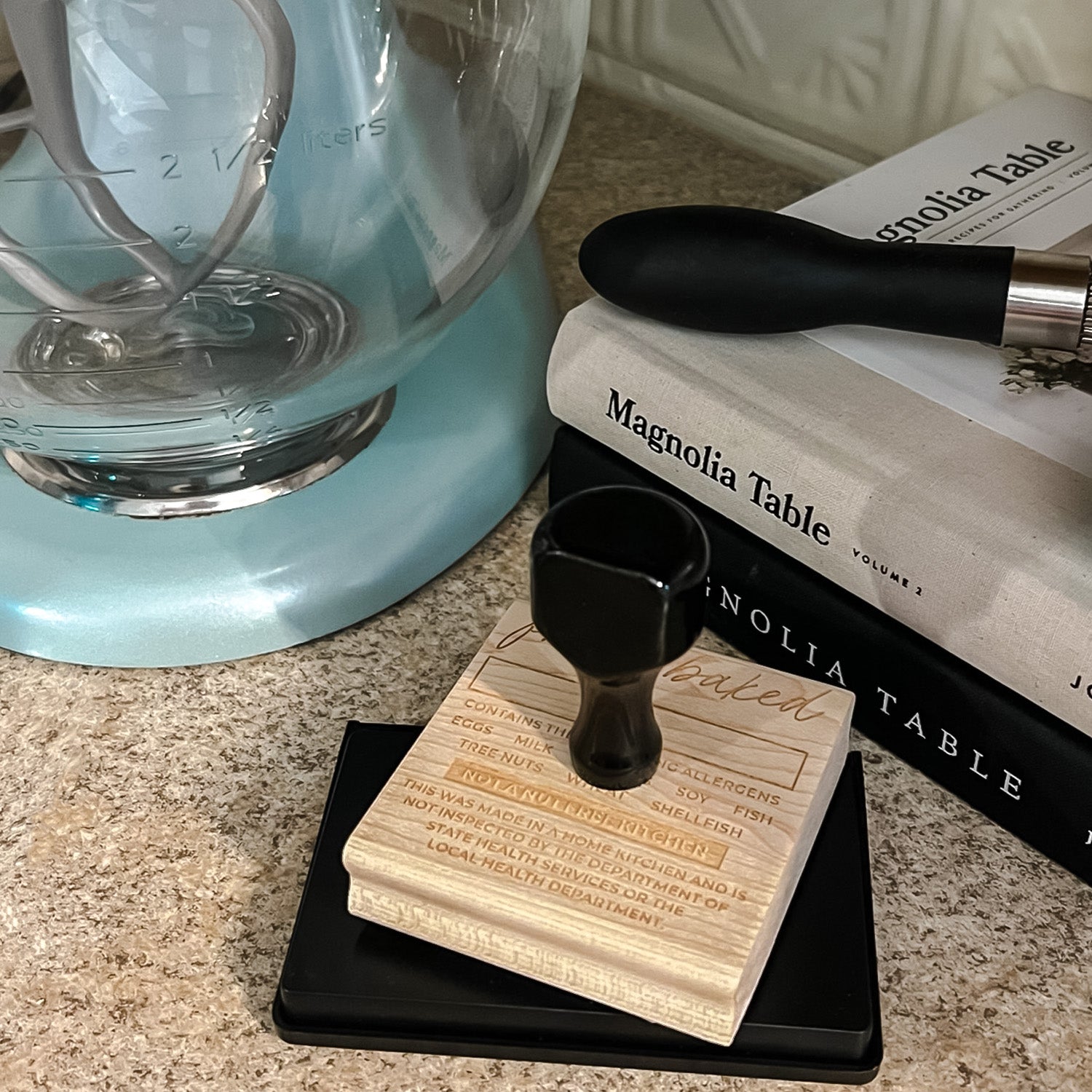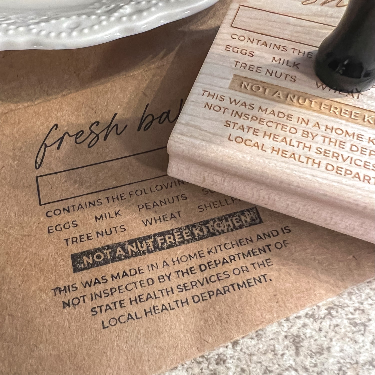 Easily label your baked goods with this rubber stamp! Stamp on boxes, envelopes, cards, tags, and more. You can write the recipe name in the box and circle the allergens for each baked good you make. This traditional wooden hand stamp is 3" x 3" with an imprint size of 2.75" x 2.75". If you'd like to make any changes to this stamp design, please email boutique@rubber-stamp.com before purchasing. This stamp does not include a stamp pad. If you'd like to purchase an ink pad to use with your stamp, please see the Stamp Pad section below.