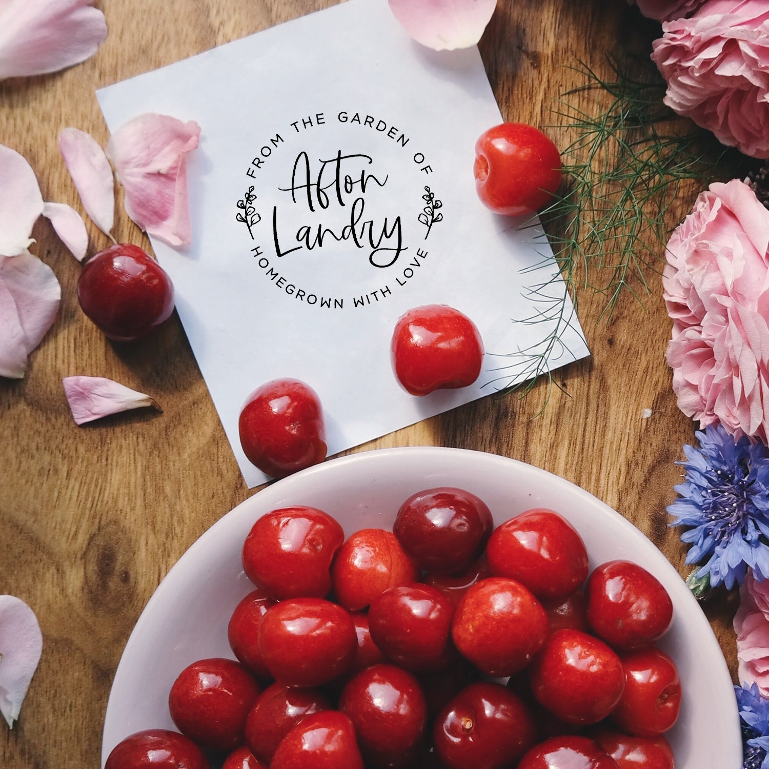 Are you a backyard gardener? Our custom From The Garden Of Stamp is a great addition to your home grown fruits and veggies. Easily add your name to your fresh produce, canning jars, product packaging, and more with this stamp. Your stamp comes filled with one premium ink color of your choice. Choose from black, red, blue, green, or violet.
