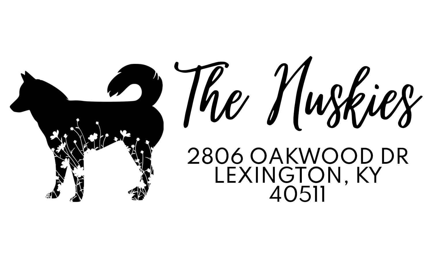 Let your husky love be known with this address stamp! Perfect for adding your return address to envelopes, postcards, and letters. It's also a great gift to give your new favorite married couple!