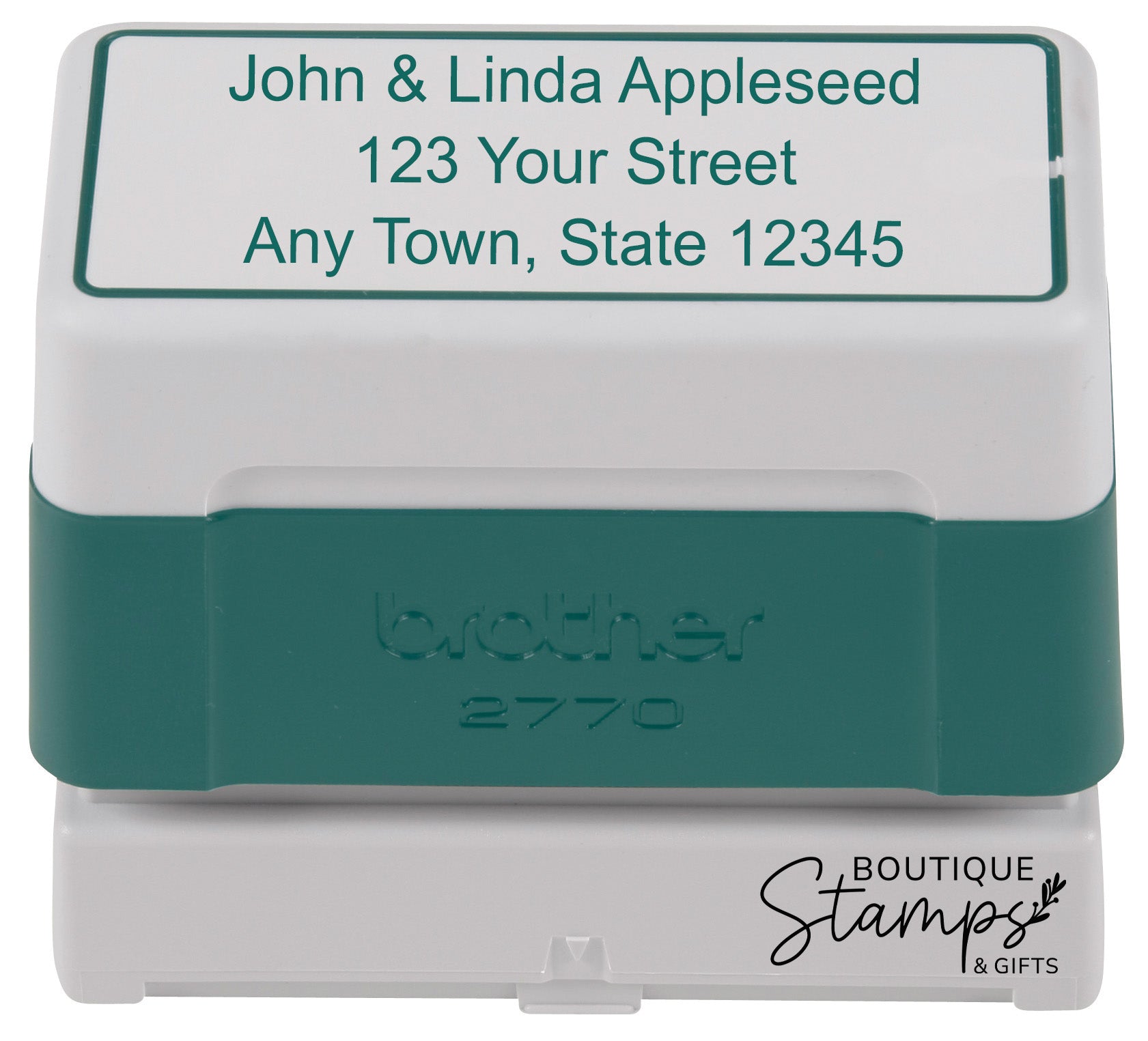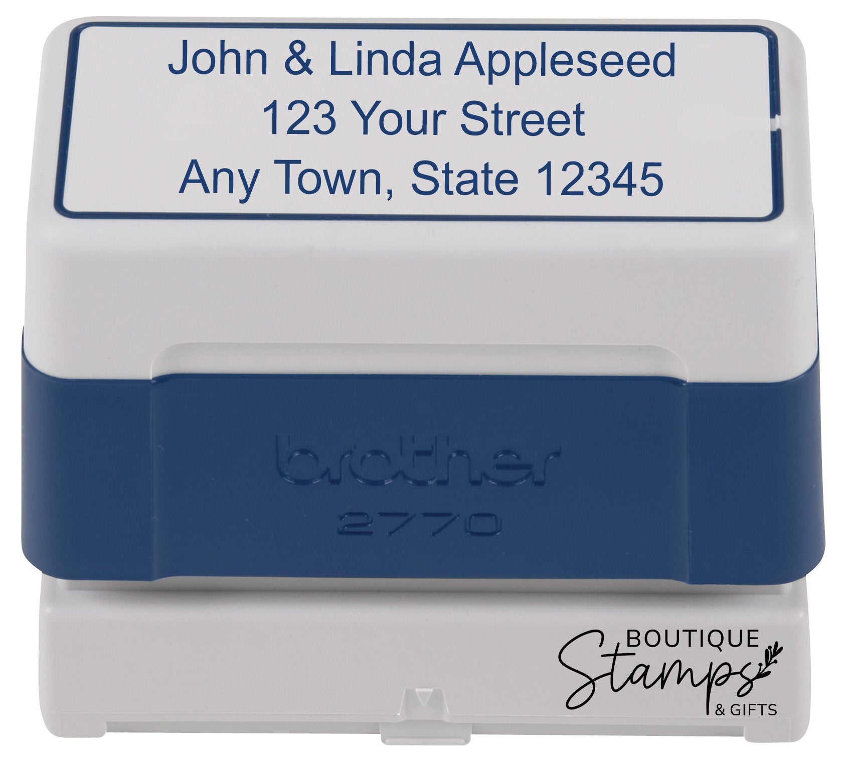 The Brother Pre-Inked Stamp assures a perfect imprint! This simple address stamp is perfect for adding your return address to envelopes, post cards, and letters. The pre-inked stamp can be personalized with your favorite color and font. Oil based ink will dry on many glossy paper surfaces. Select from black, blue, red, or green ink. Create your own custom stamp now!