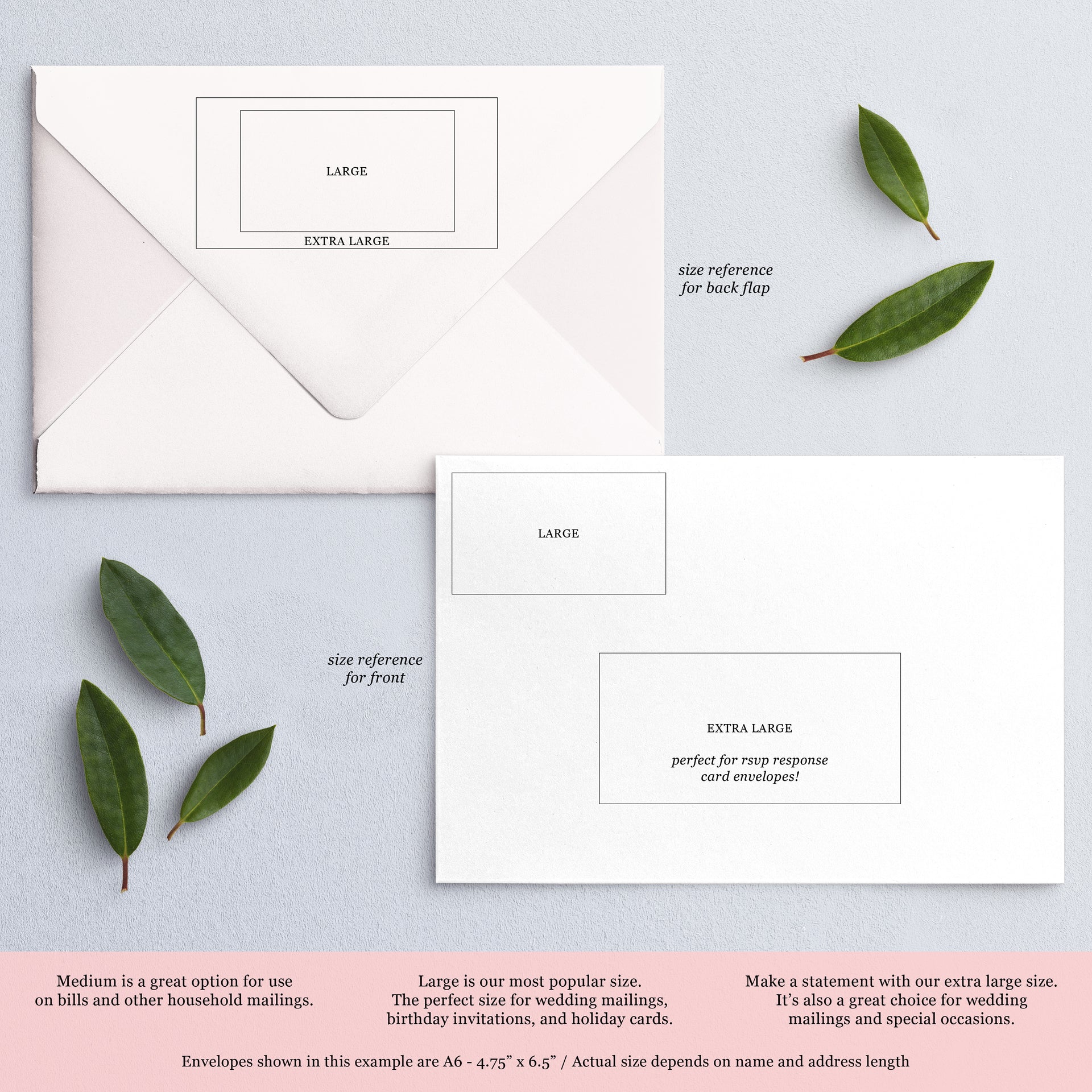 Easily add your return address with this uniquely designed stamp! Great for stamping on envelopes, postcards, and more.