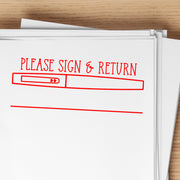 Add a little FLAIR to your stamping! Ask your employees, clients, etc. for a signature with this adorable stamp! A line is included on the stamped design to show where to sign. The self-inking stamp can be personalized with your favorite color. Choose from black, red, blue, green, or violet.