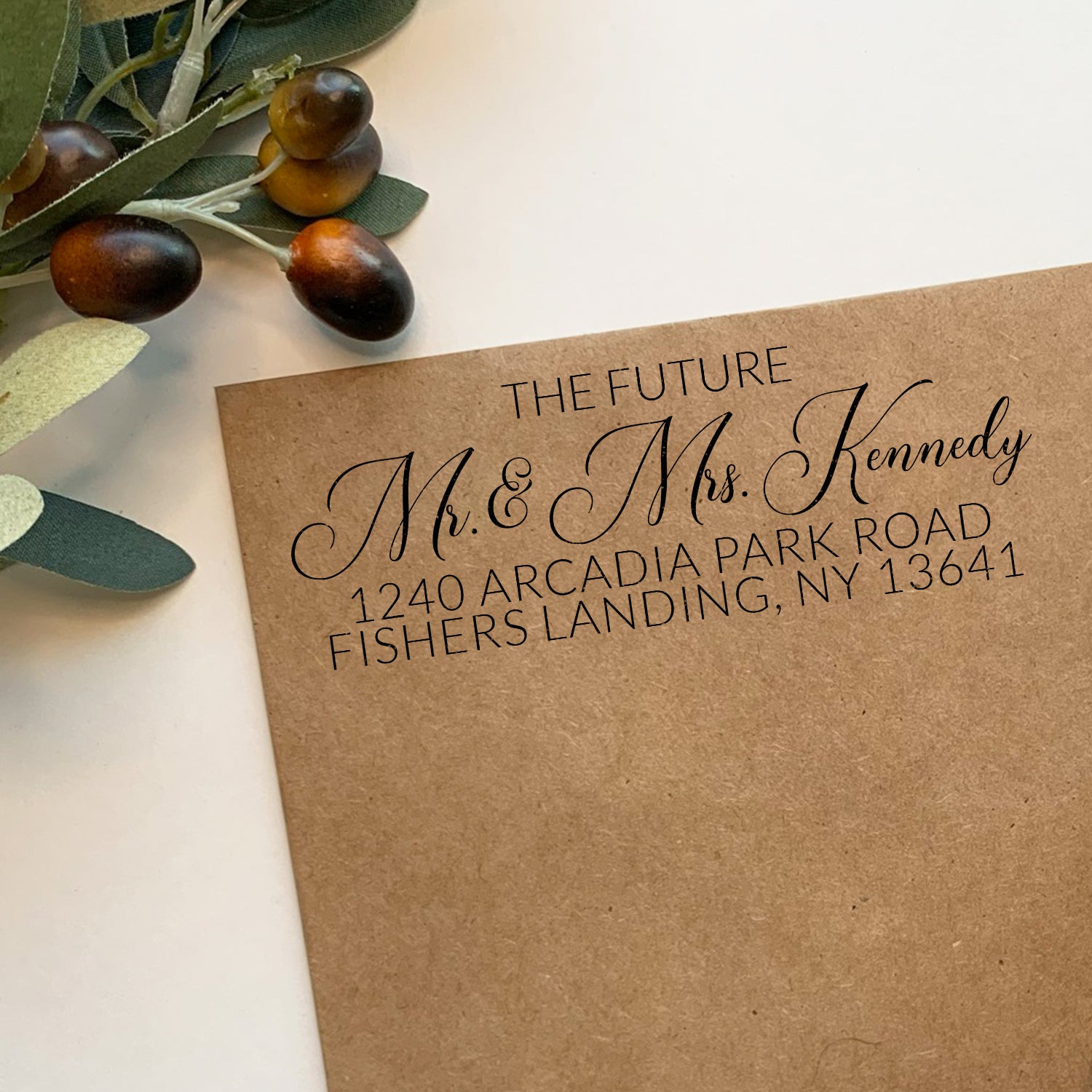 This simple address stamp makes it easier to add your return address to save the dates, invitations, thank you cards, and more. It's also a great gift to give your favorite soon to be married couple!