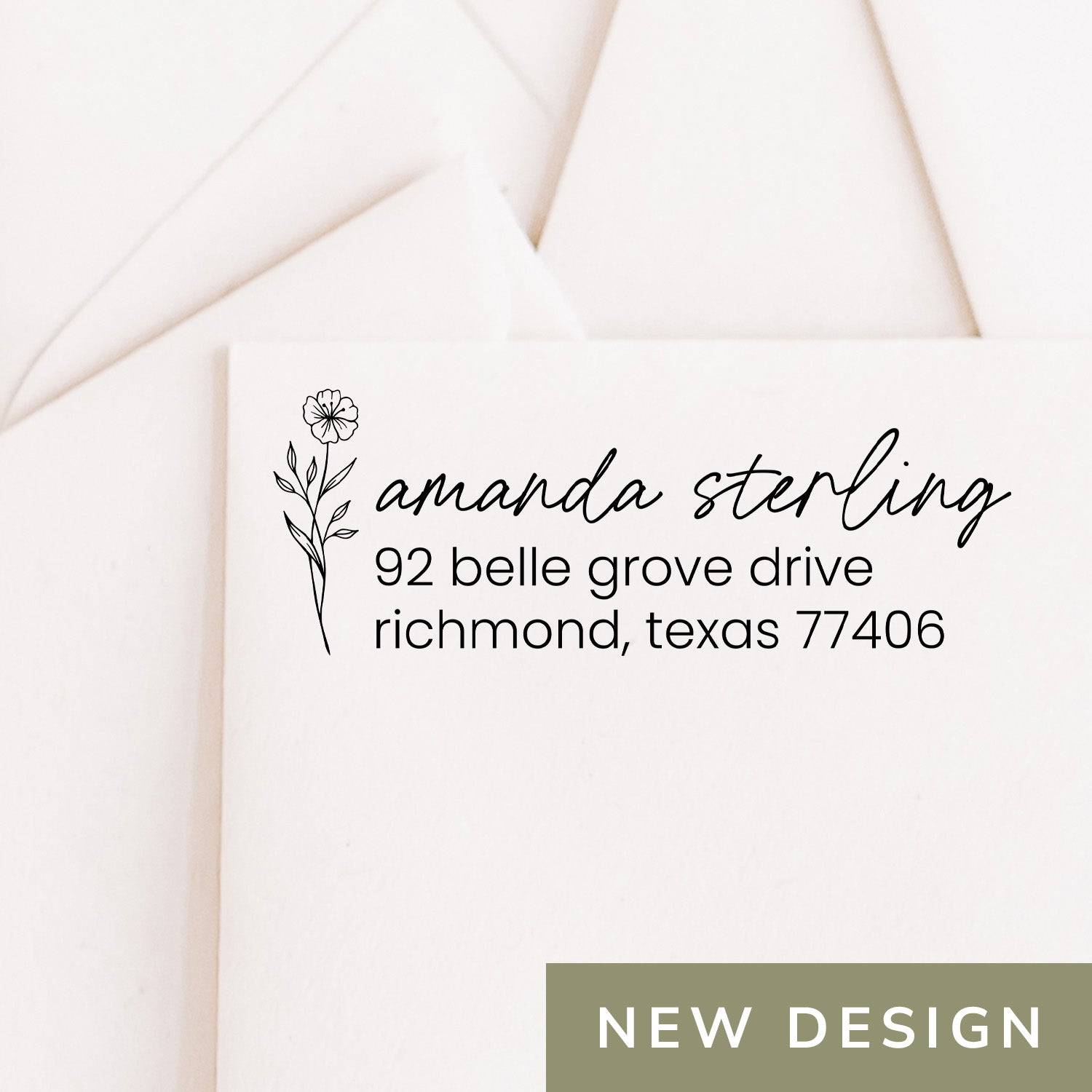 Easily add your return address with this uniquely designed stamp! Great for stamping on envelopes, postcards, and more.