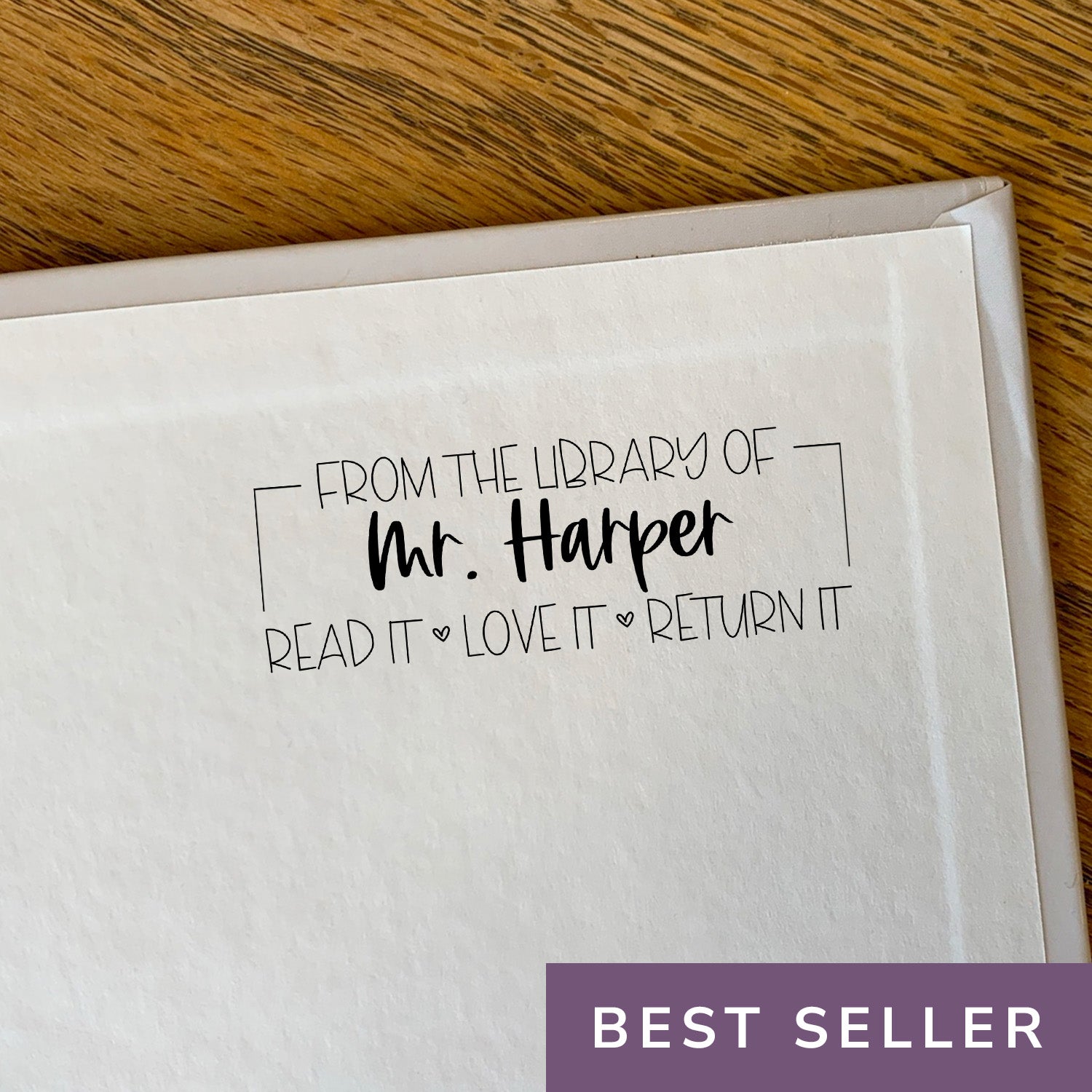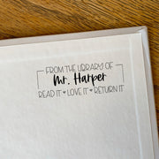 This Library Teacher Stamp makes it easy to add your name to all of your classroom books! Keep track of your books with ease and make sure books are returned with a quick stamp. Save time and stay organized with this easy-to-use stamp! The self-inking stamp can be personalized with your favorite color. Choose from black, red, blue, green, or violet.