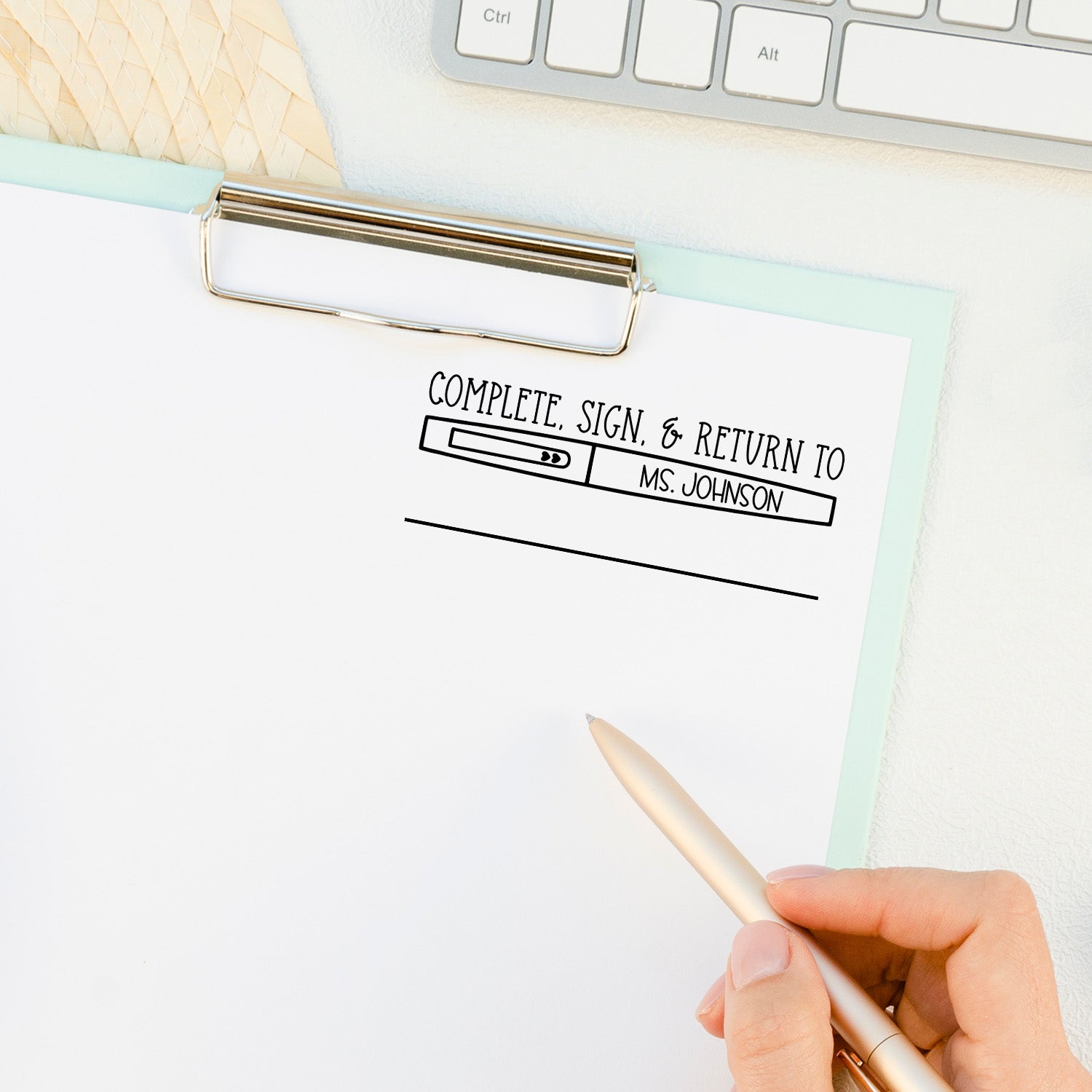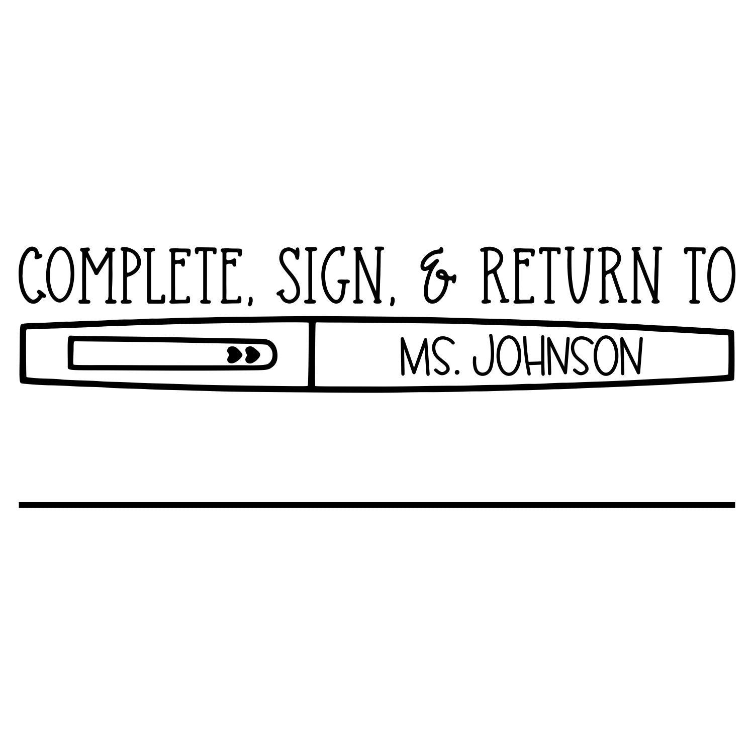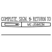 Add a little FLAIR to your stamping! This stamp makes asking for parent/guardian signatures fun and simple. A line is included on the stamped design to show where to sign. The self-inking stamp can be personalized with your favorite color. Choose from black, red, blue, green, or violet.
