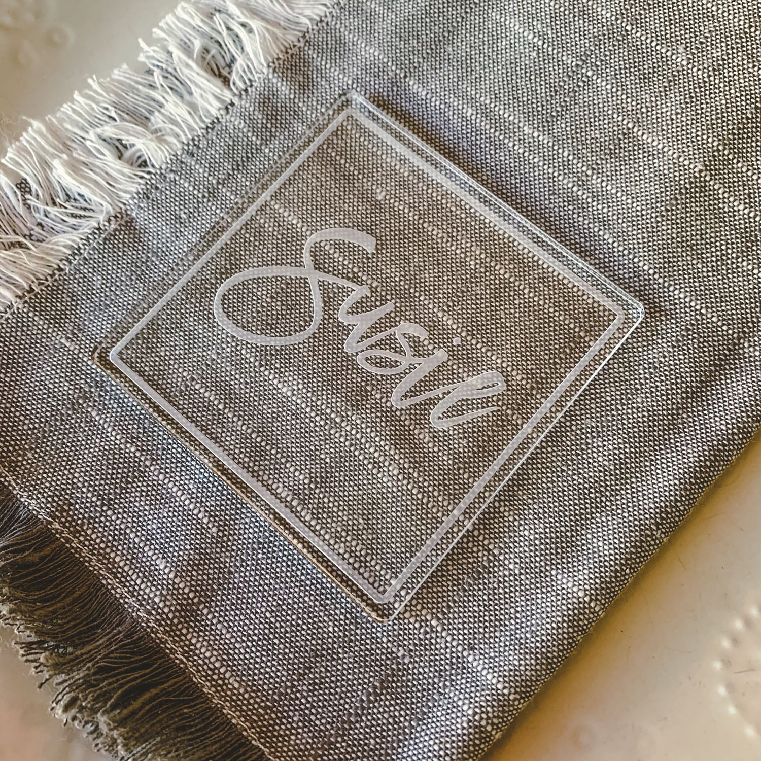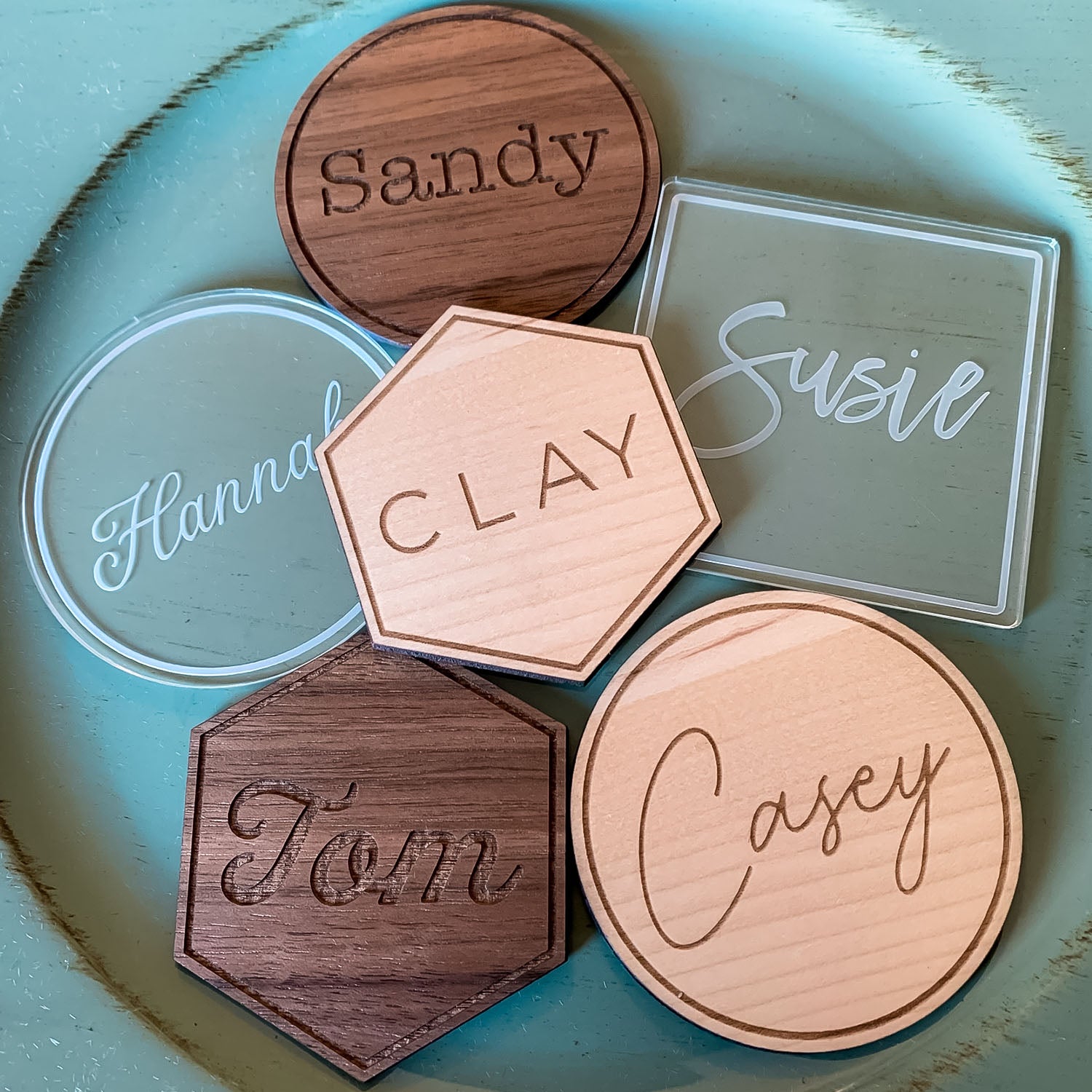 Our tags are beautifully laser engraved on one side and made to order just for you. Choose from clear acrylic, maple wood, or walnut wood. Due to the variances in wood composition, each wood engraving will vary slightly in color and texture.