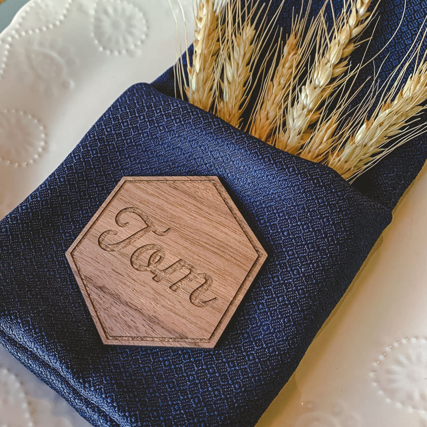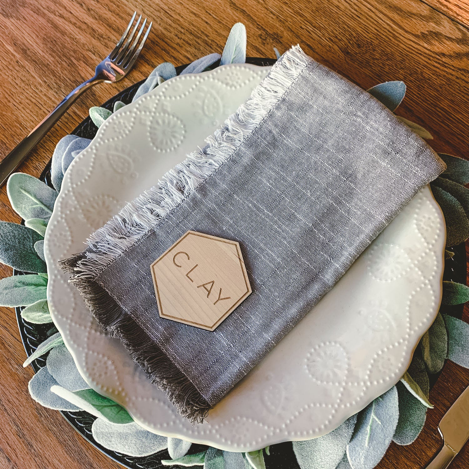 Add a special look to your holiday table with our personalized Place Setting Name Tags! Your dinner guests will love seeing this custom place card at their seat. These name tags can be used over and over again for numerous occasions!